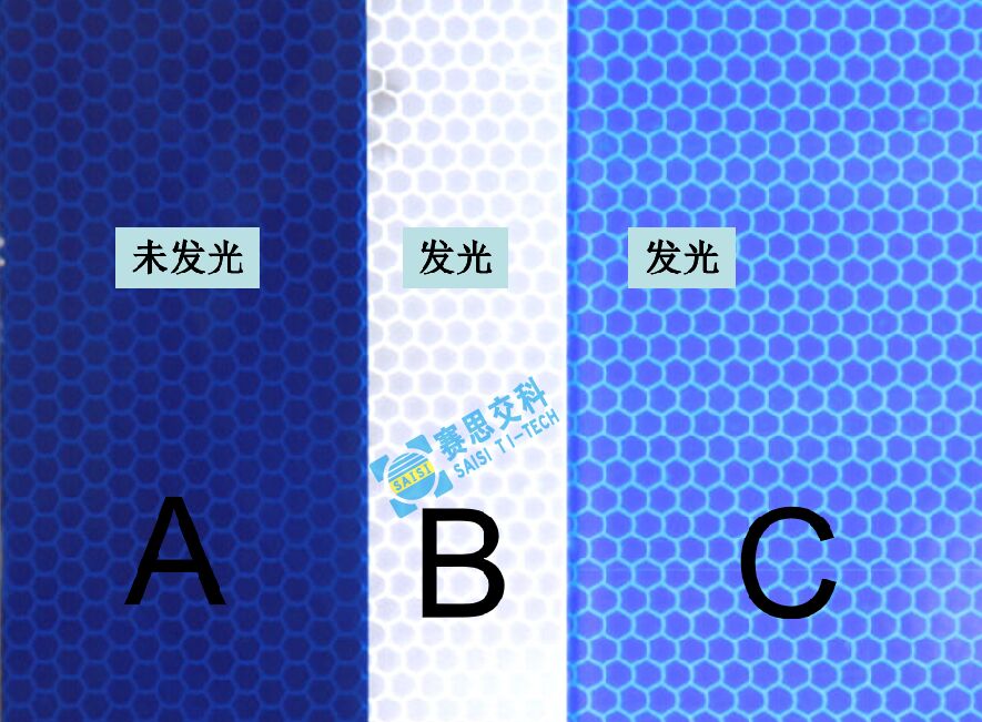 說明:A-B:半透的對比度和色品; B-C:全透的對比度和色品。視覺效果:白色發光,與規范值沒有色差。 藍色或綠色,主動發光后,與色品規范值存在差異。