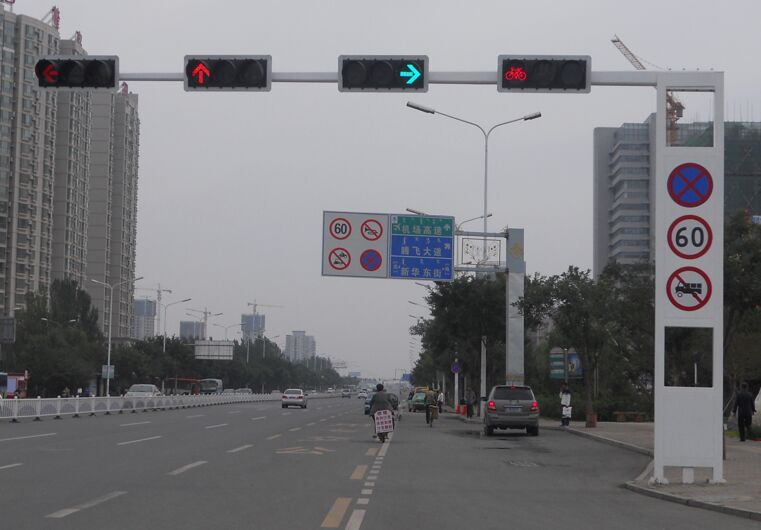 其二,這個“新版紅綠燈”中,用“新版”兩字定義“紅綠燈”,使用不當。目前我國所規范的常見紅綠燈,主要包括:機動車信號燈(俗稱“圓盤燈”)、方向指示信號燈(俗稱“箭頭燈”)、非機動車信號燈(俗稱“自行車燈”)、人行橫道信號燈(俗稱“人行燈”)、車道信號燈(俗稱“紅叉綠箭頭燈”)、閃光警告信號燈(俗稱“黃閃燈”)等,在這種所謂的“新版紅綠燈”中,只是采用了一種“左轉箭頭燈”+“滿屏燈”和“右轉箭頭燈”的組合方式,并可根據調控需要,實時關閉左、右箭頭燈,切換成不同類型的紅綠燈組合,其本質只是一種可切換的紅綠燈亮燈組合,而不是所謂的“新版紅綠燈”,因為紅綠燈的樣式并沒有改變,仍是符合國標《道路交通信號燈》(GB14887-2011)的技術要求,所以準確的叫法應該是:“新版紅綠燈亮燈組合”。