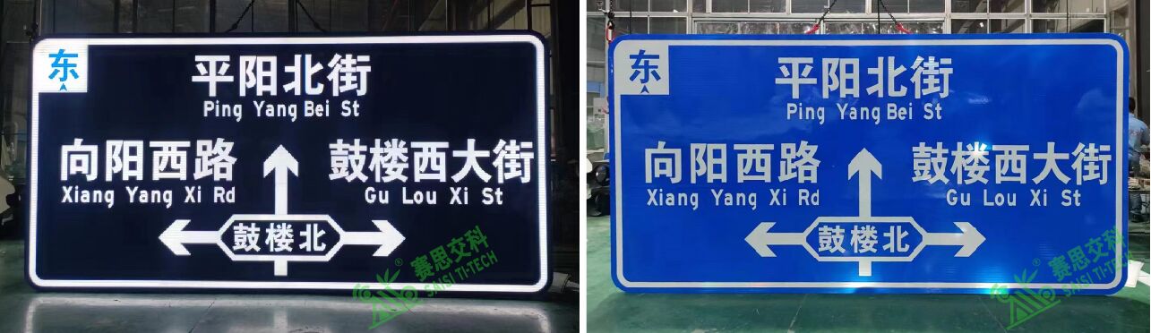 背透式主動發(fā)光標志,是一種內(nèi)置照明標志,即通過內(nèi)置光源照射,光源從標志面版層的后背穿過(pass through),增強標志版面關(guān)鍵信息的亮度,來提升標志視認的一種發(fā)光標志制作工藝。背透式發(fā)光標志,按其面板層的發(fā)光面積占比大小,又分為“半透型”和“全透型”兩款。半透型背透式主動發(fā)光標志,其面板僅增強了關(guān)鍵信息內(nèi)容的發(fā)光,標志底板不發(fā)光,僅保留了逆反射功能,其優(yōu)點在于標志視認的對比度強;全透型背透式主動發(fā)光標志,其整個面板層都發(fā)光,也同時保留不發(fā)光時的逆反射功能,其優(yōu)點在于標志整體的亮化效果更醒目。