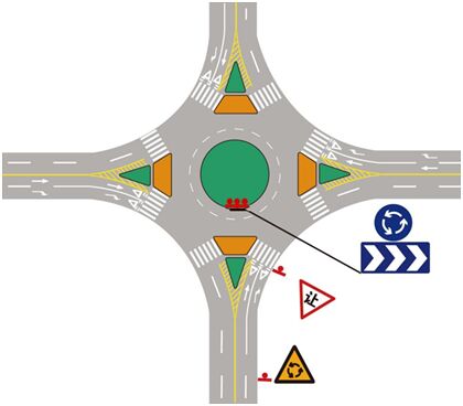 3、環(huán)形交叉口,入環(huán)車輛需要讓行環(huán)內(nèi)車輛時(shí),應(yīng)設(shè)置減速讓行標(biāo)志。