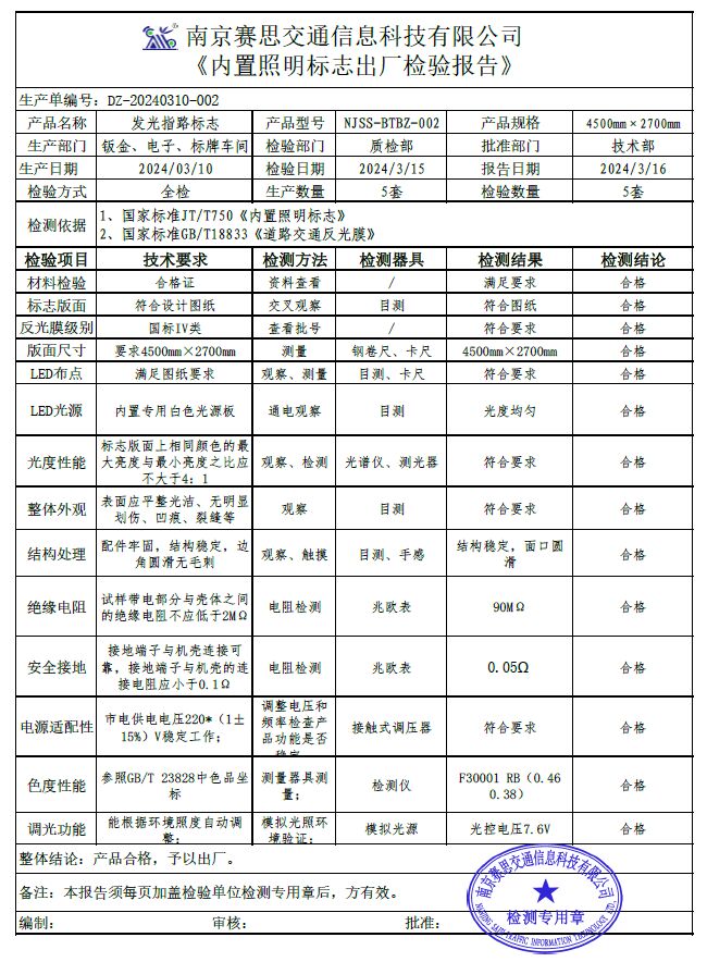 一塊完整的發光標志牌生產技術,涉及到:材料力學、結構力學、光學、電子電路、太陽能供電系統、智能控制、數據通訊等眾多領域,任何一道工序的馬虎麻痹,都會導致標志最終的質量瑕疵,“將問題控制在出廠前!”這是我們賽思交科提出的生產管理口號,出廠前發現問題,能及時補救,設備資源、人力資源、技術資源都很完備,遠勝于出廠后才發現問題的茫然與手忙腳亂。“讓客戶放心、省心、安心!”這是我們賽思交科的服務宗旨,出廠前,對每一個細節的注重,就能省去客戶現場的很大麻煩。“我們比客戶更專業!我們比客戶更懂發光標志!我們比客戶更了解發光標志的內部結構!我們比客戶更具備解決問題的各種條件資源!”,消患于未然,我們賽思交科作為良心企業,必須要高度重視檢查檢測工作!!出廠前,我們嚴格按照《檢查檢測作業指導流程》,做好以下檢查檢測工序: