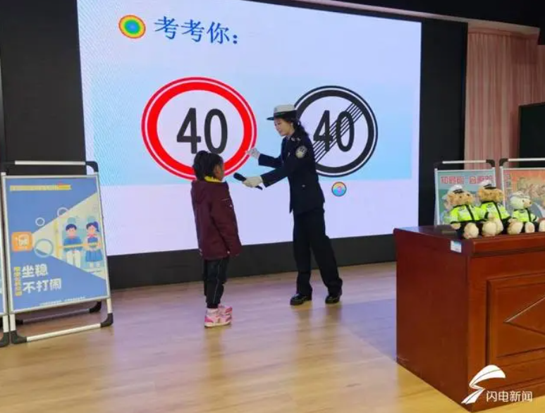 “生動(dòng)活潑,入腦入心”。民警通過ppt為同學(xué)們介紹了各種常見的交通標(biāo)志、標(biāo)線,例如“一盔一帶”,“安全帶是生命帶”、“細(xì)觀察,不猛跑”等。同時(shí),民警還開展了有獎(jiǎng)互動(dòng),為答對(duì)問題的小朋友送上交通安全文創(chuàng)產(chǎn)品。